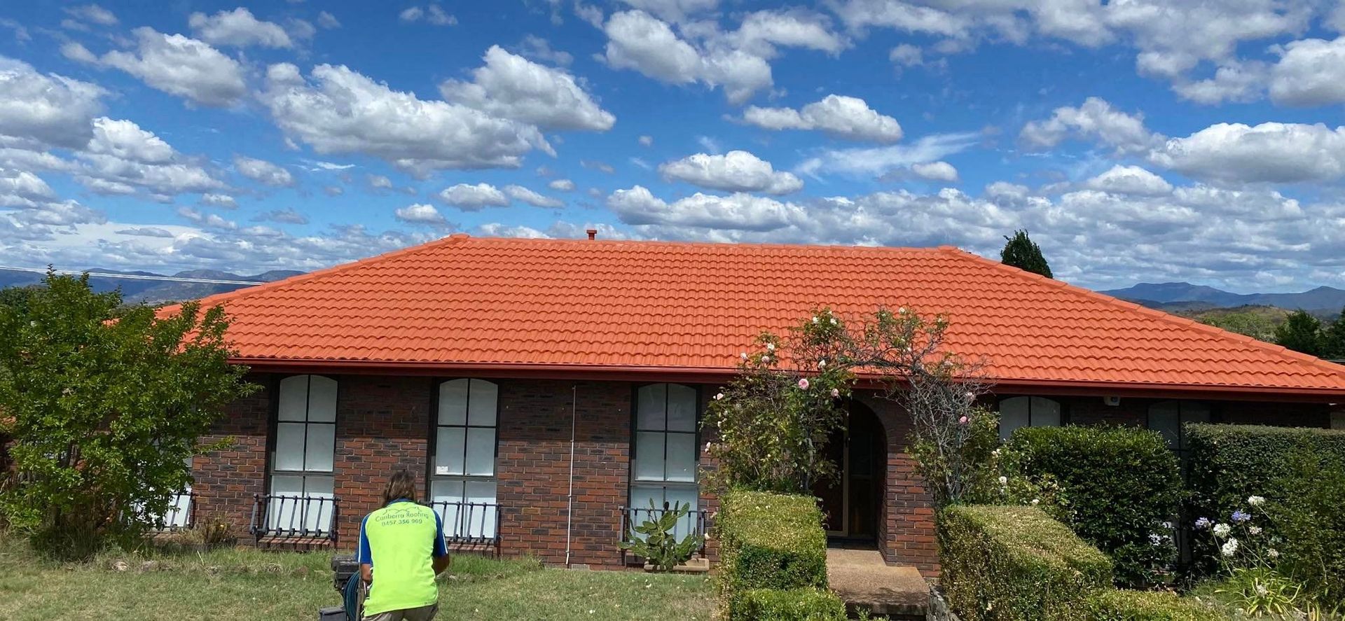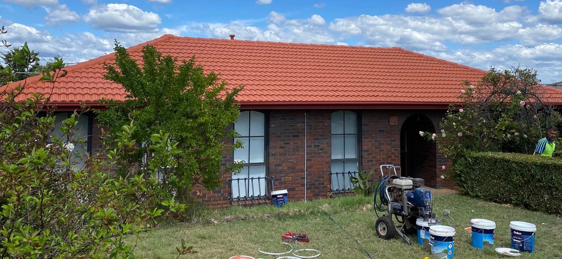 This Home in Wanniassa ACT just had a Complete Roof Restoration including a Full Rebed & Repoint of the Ridge caps, Presure cleaned and 3 coats of Dulux applied in Terracotta colour.