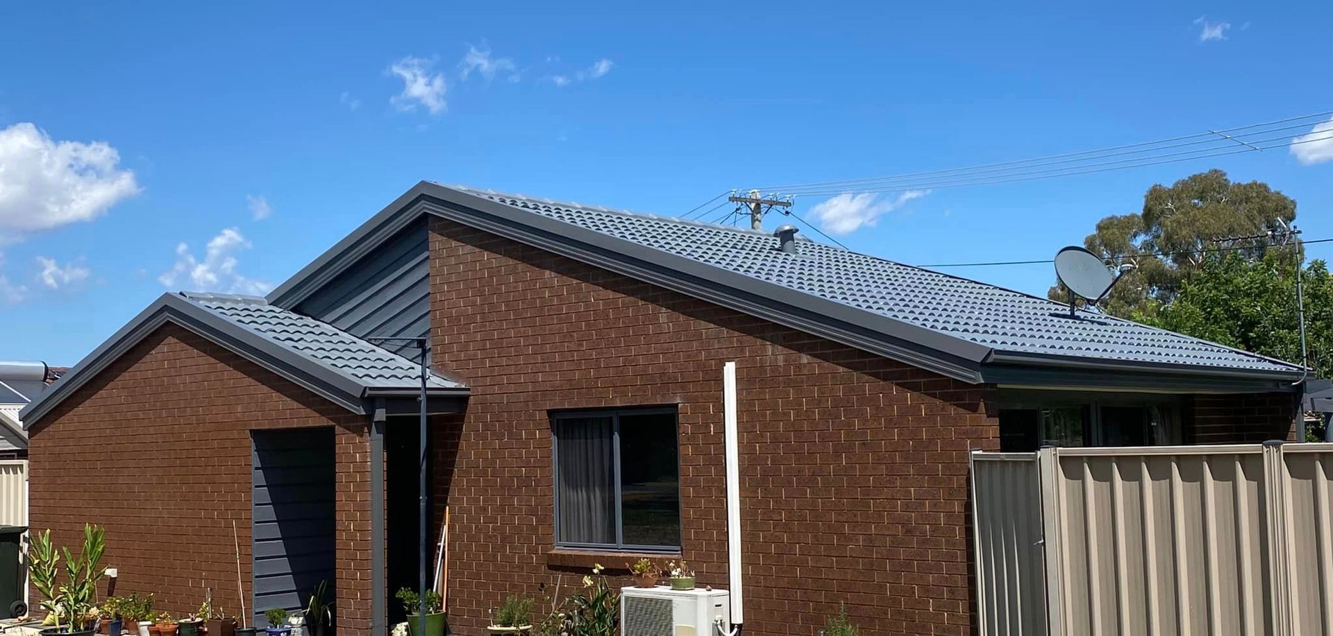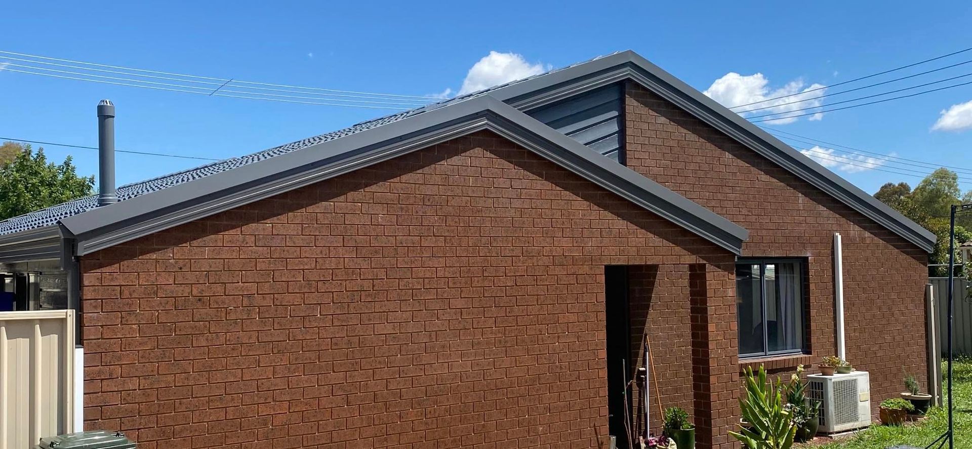 This home in Richardson ACT had a much needed makeover and barge boards fixed after a carpenter repaired them Fascia covers, Quad gutters, Downpipes and the custom made barge capping all finished off in Ace Basal (Basalt) the roof as coated in Dulux Basalt.